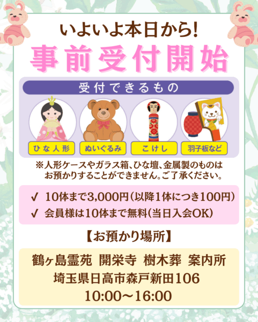 人形供養祭についての詳細は当樹木葬の【こちら】のコラムからご覧ください。