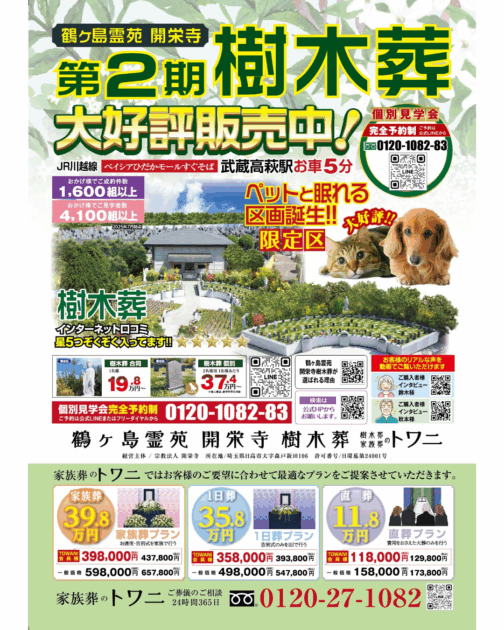 トワニグループの 樹木葬・家族葬のポスターを掲出中です。